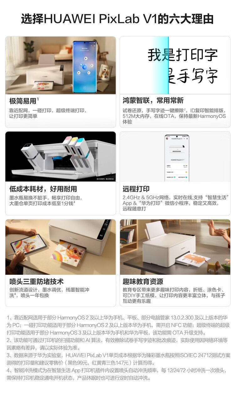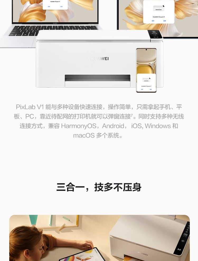 华为(HUAWEI)彩色连供喷墨多功能打印一体机办公学生家用/打印复印扫描/大墨仓可加墨/无线打印PixLabV1