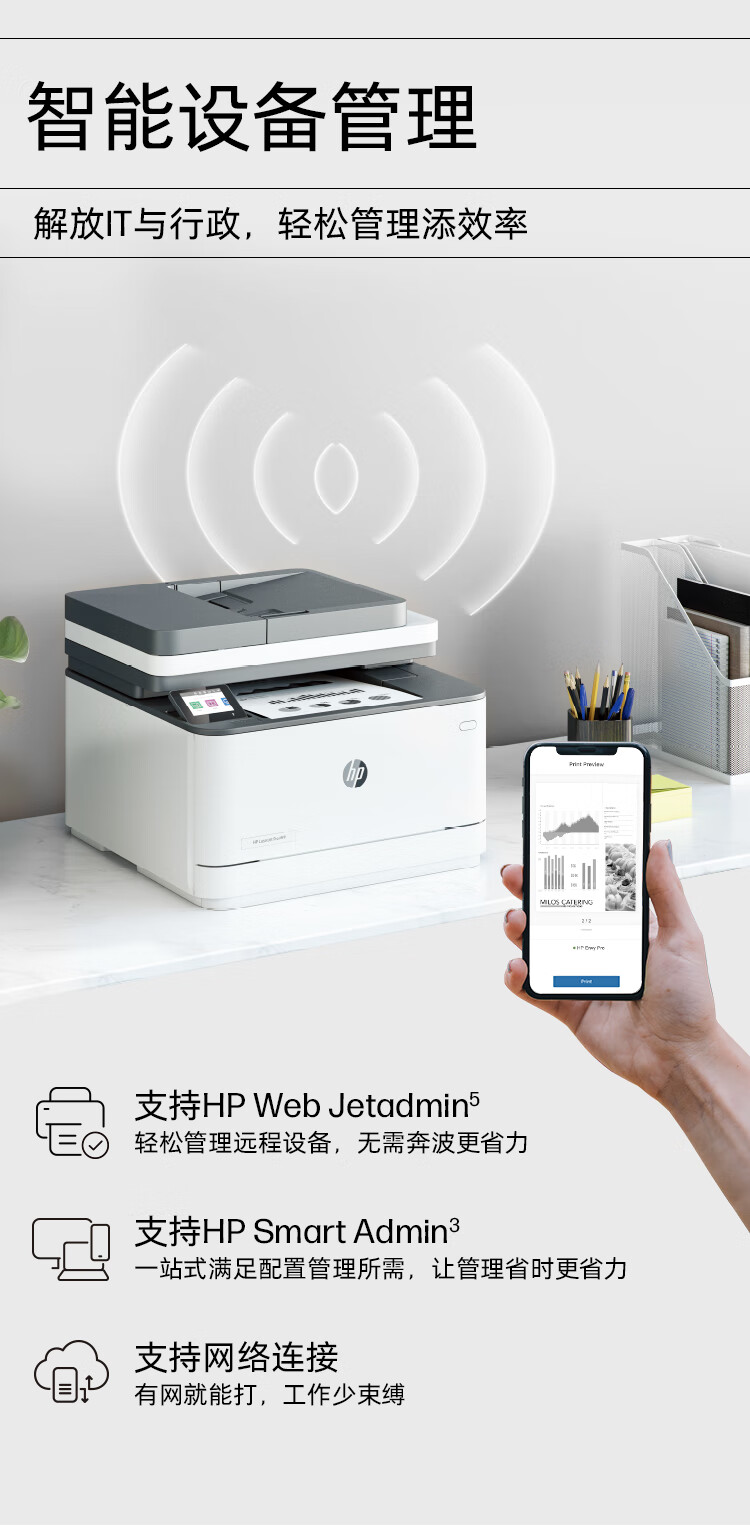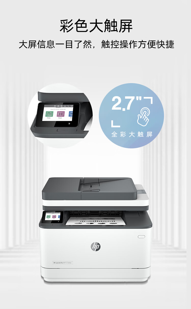 惠普(HP)3104fdw自动双面黑白激光无线打印机自动输稿打印复印扫描传真四合一一体机智能管理