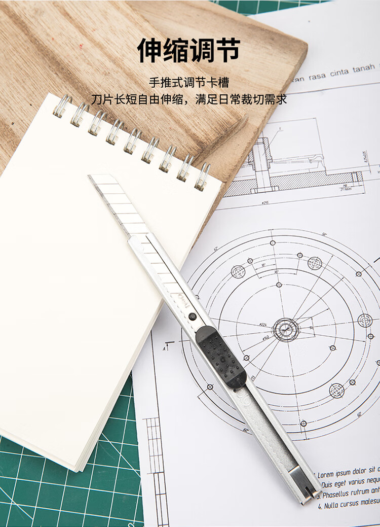 得力(deli)小号薄款金属外壳办公家用美工刀/裁纸刀办公用品2053