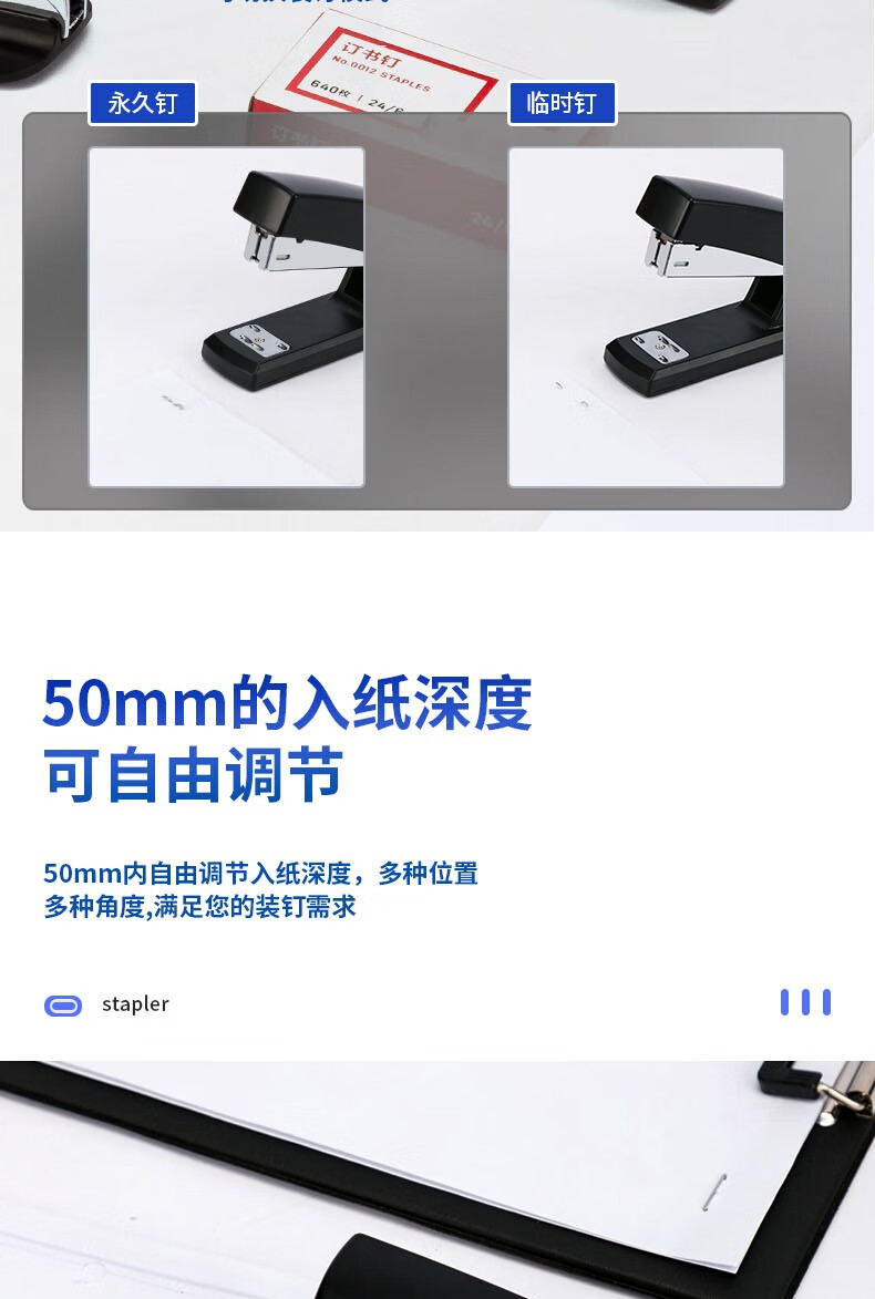 得力(deli)12#办公订书机3件套(订书器+订书钉+起钉器)办公用品黑色0354