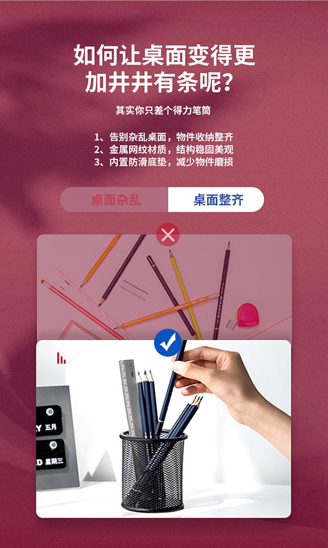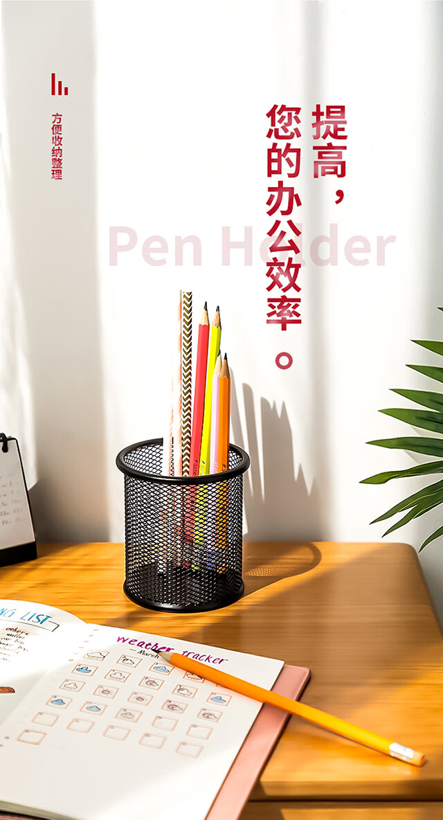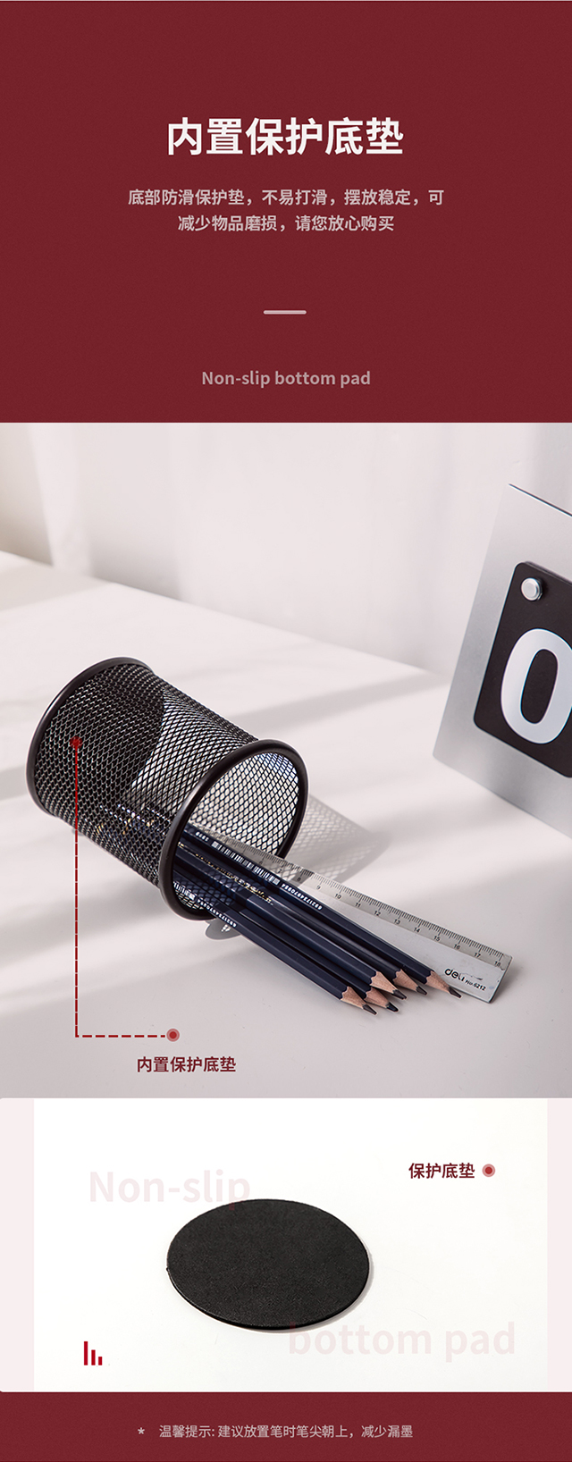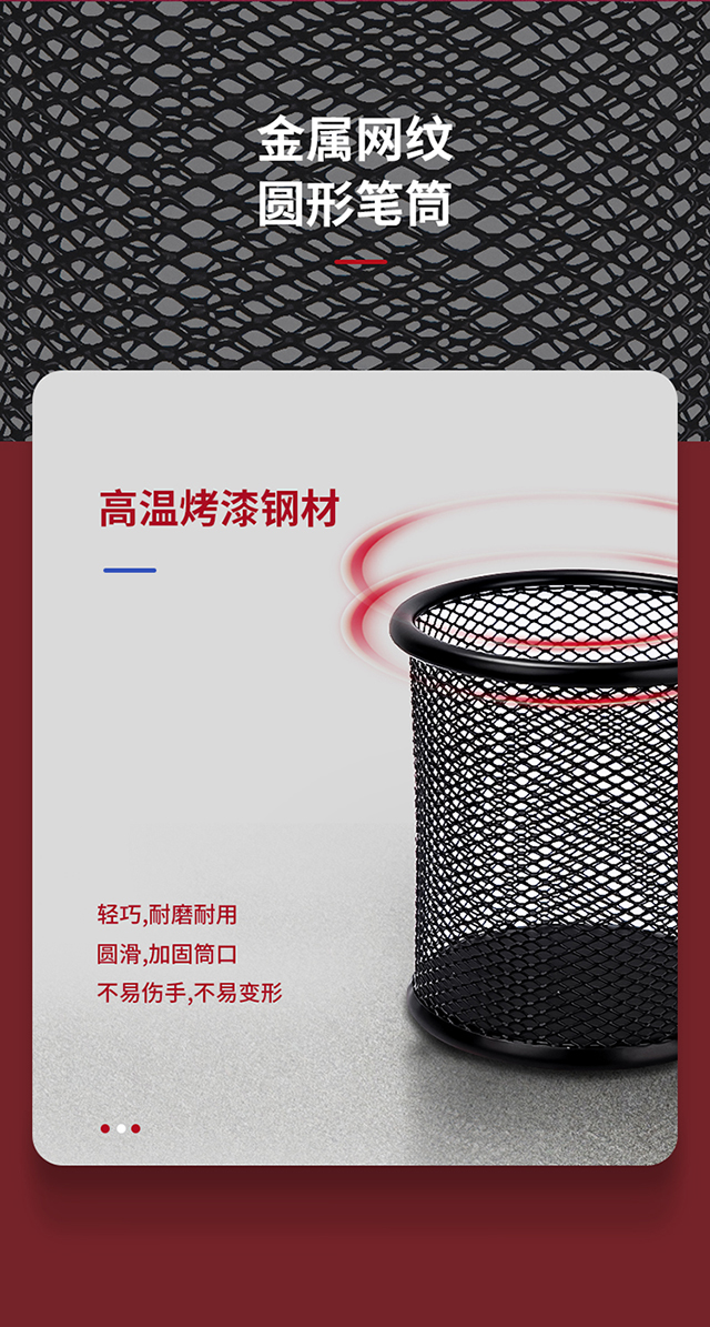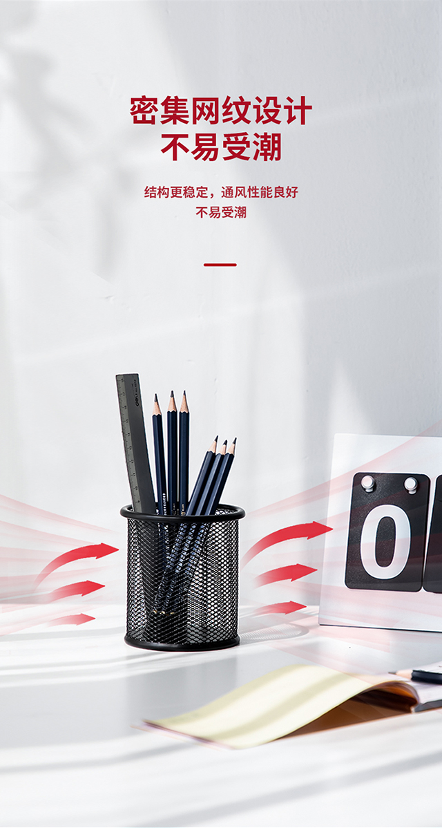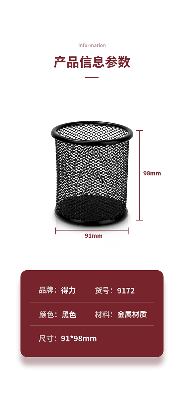 得力(deli)金属网纹圆形笔筒简约创意桌面收纳盒办公用品黑色9172
