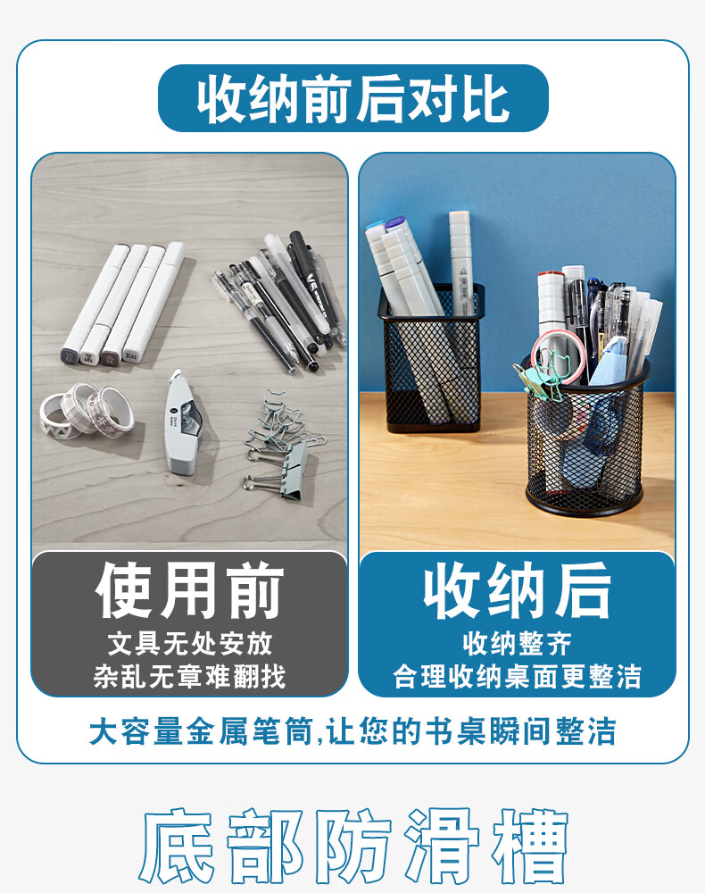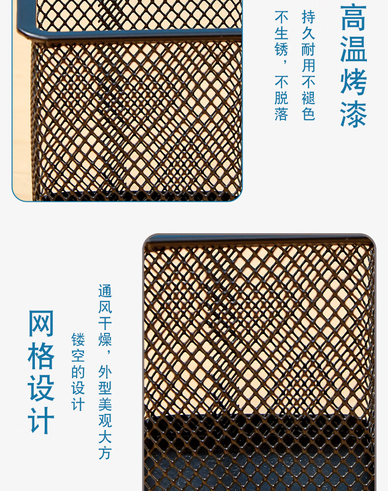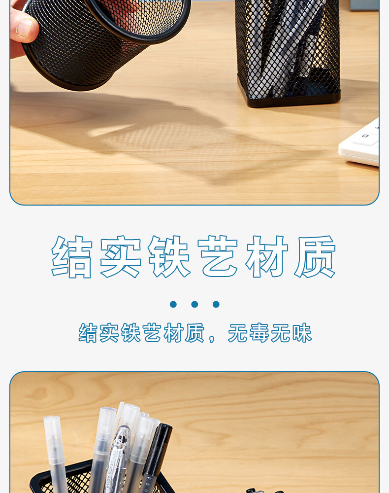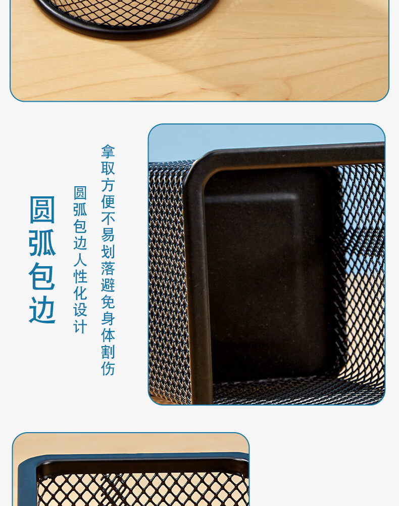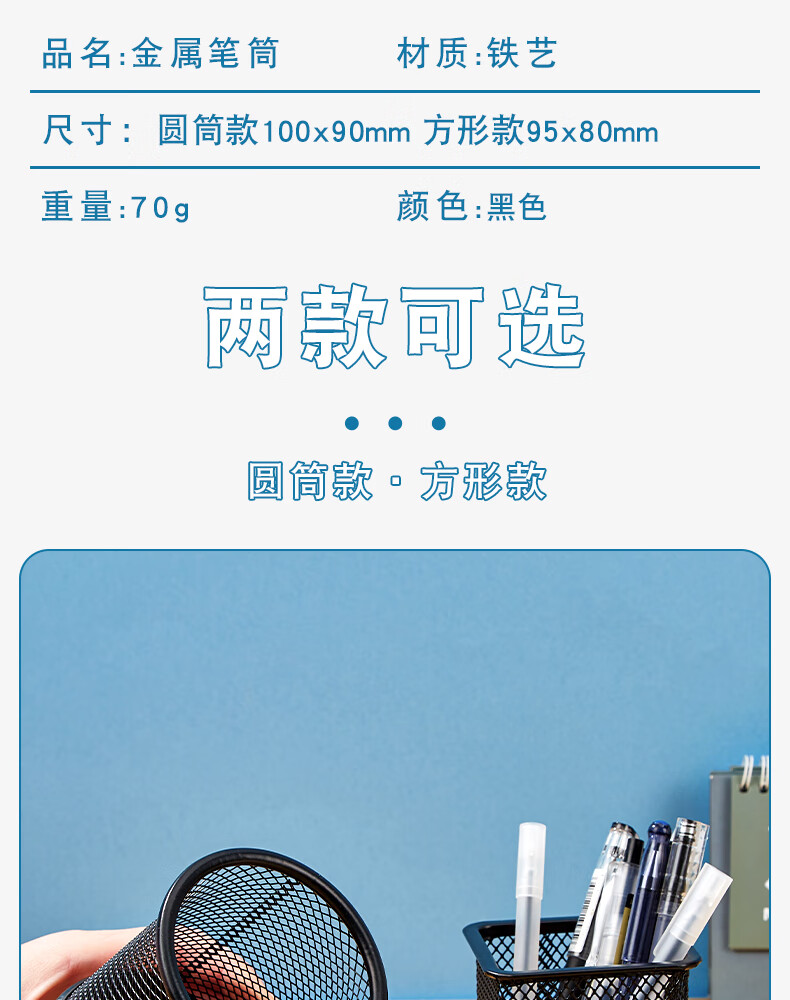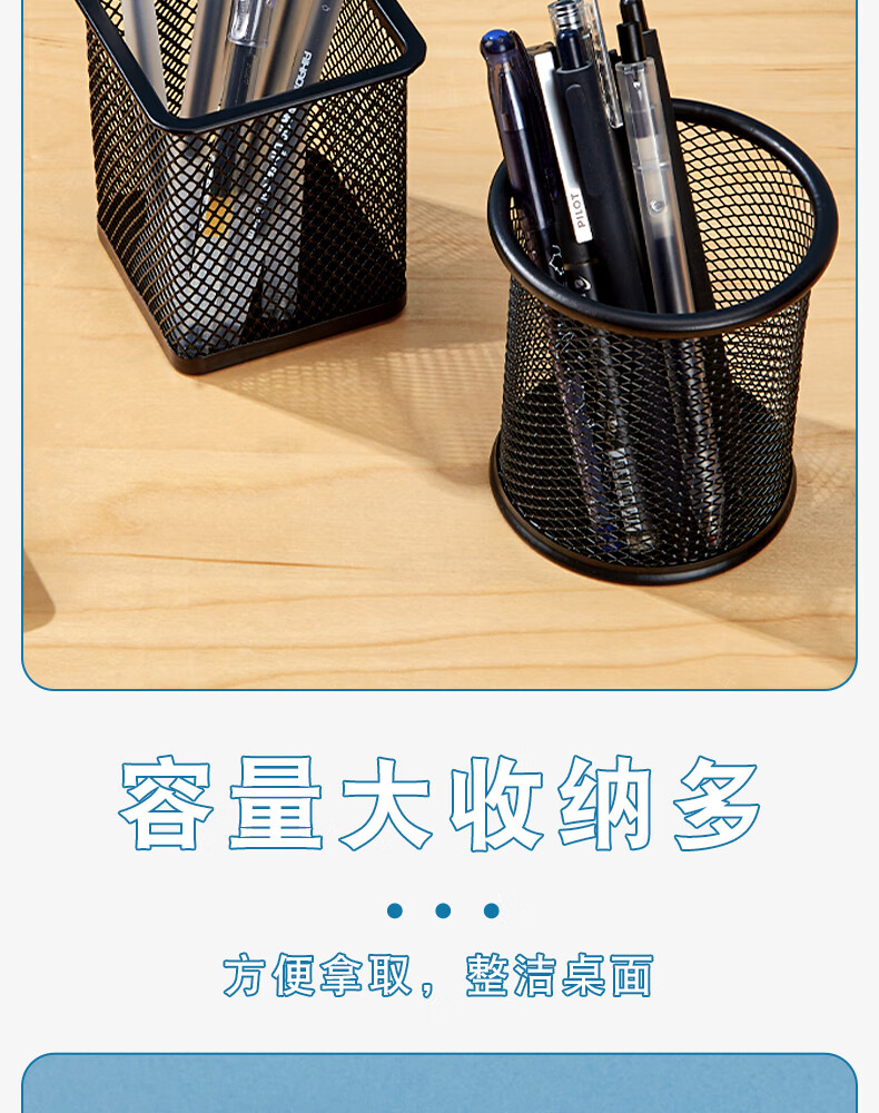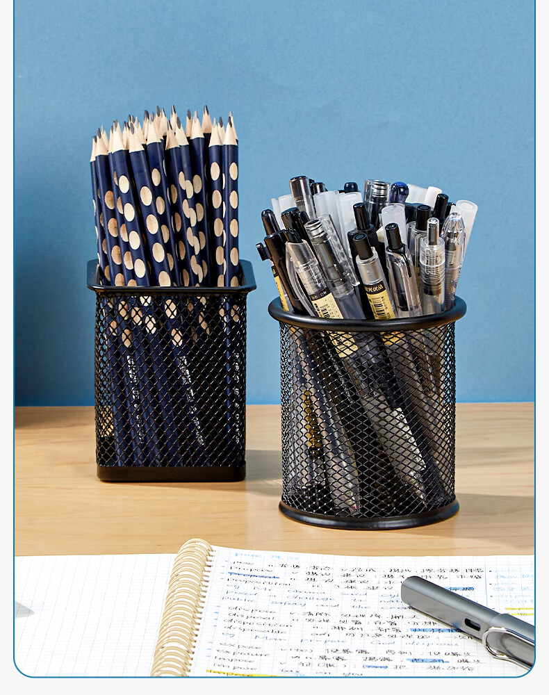 三年二班金属网格圆形笔筒简约桌面收纳盒摆件办公用品圆形黑色