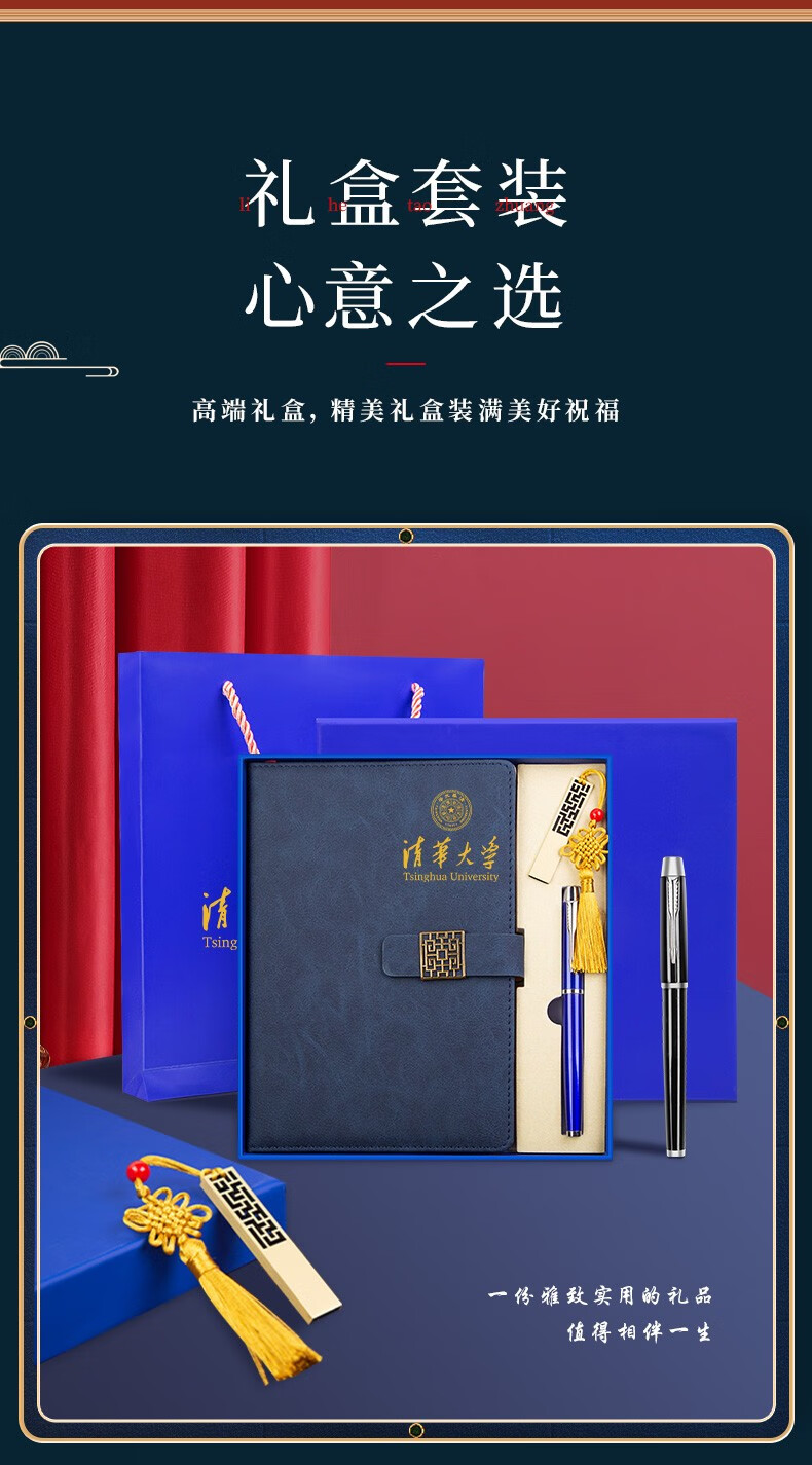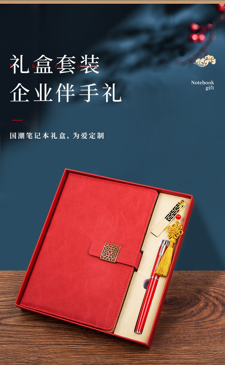 利潮笔记本定制可印logo商务年会礼品送客户员工周年庆会议活动实用伴手礼党员政治生日礼物退伍纪念品蓝-笔记本+签字笔套装