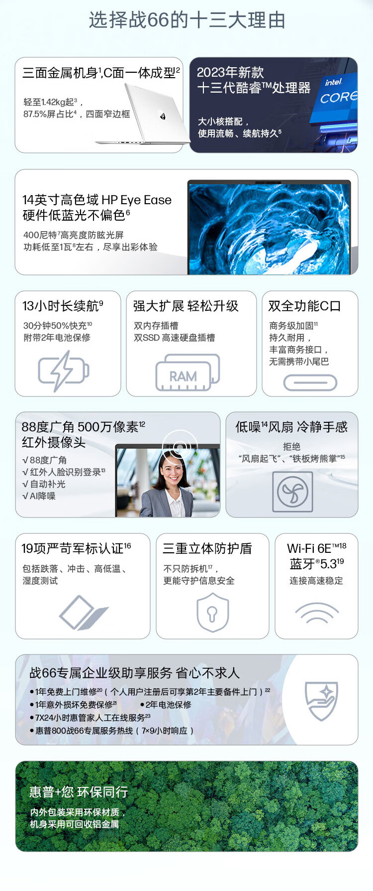 惠普(HP)战66六代酷睿版14英寸1T长续航笔记本