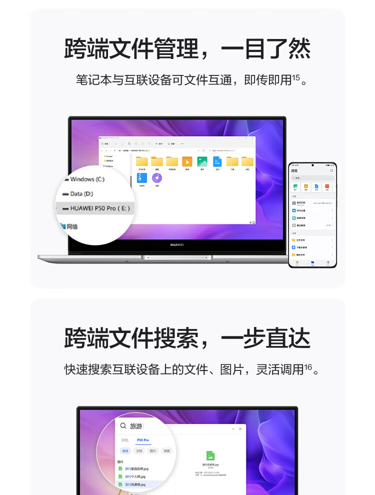 华为笔记本电脑MateBookD14SE版14英寸英特尔酷睿i516G512G轻薄本/护眼全面屏/手机互联皓月银