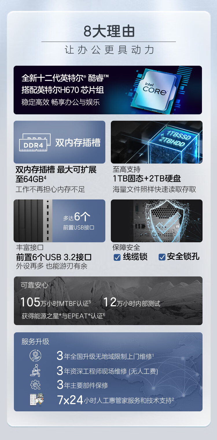 惠普(HP)战99商用办公电脑台式主机(12代i3-121008G512GSSDWiFi蓝牙Win11Office)23.8英寸显示器