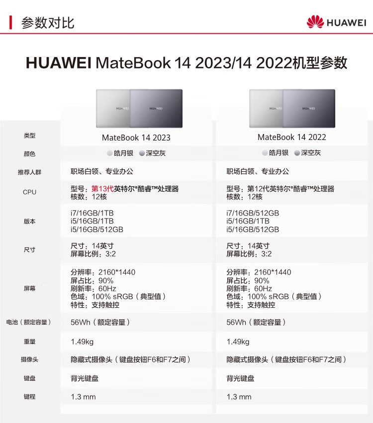 华为笔记本电脑MateBook14202313代酷睿版i516G512G14英寸轻薄办公本/2K触控全面屏/手机互联深空灰