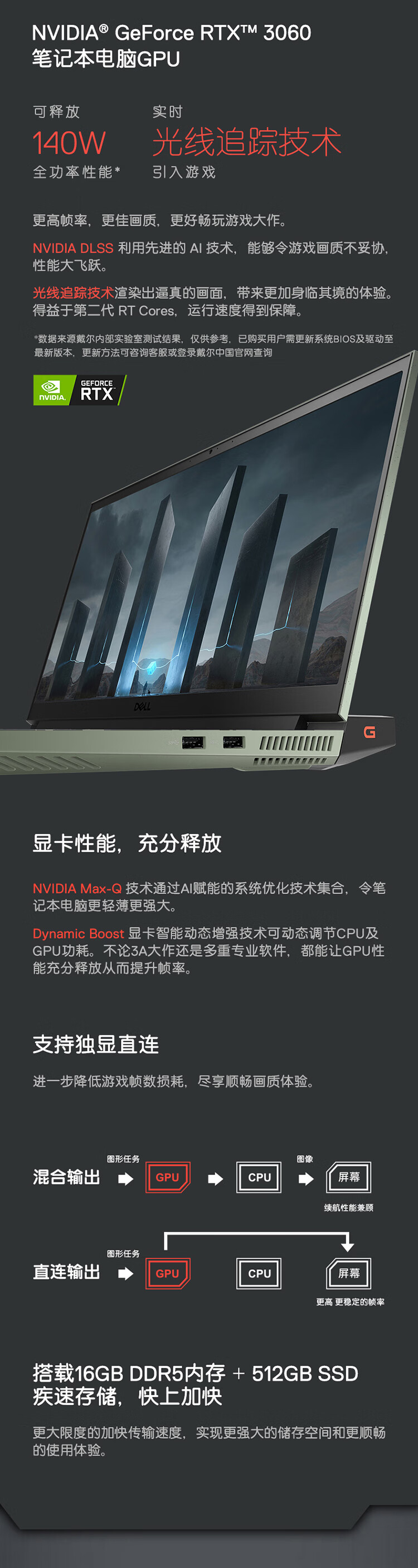 电脑戴尔(DELL)游匣G1515.6英寸游戏本笔记本电脑(14核i716G512GRTX3060165Hz高色域电竞屏)黑