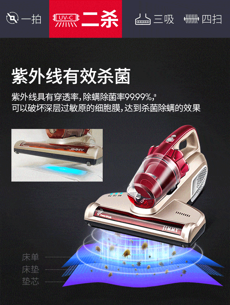 莱克吉米除螨仪B501家用床上小型手持紫外线杀菌吸尘神器去螨虫超声波升级款除螨机【甄拍B501】