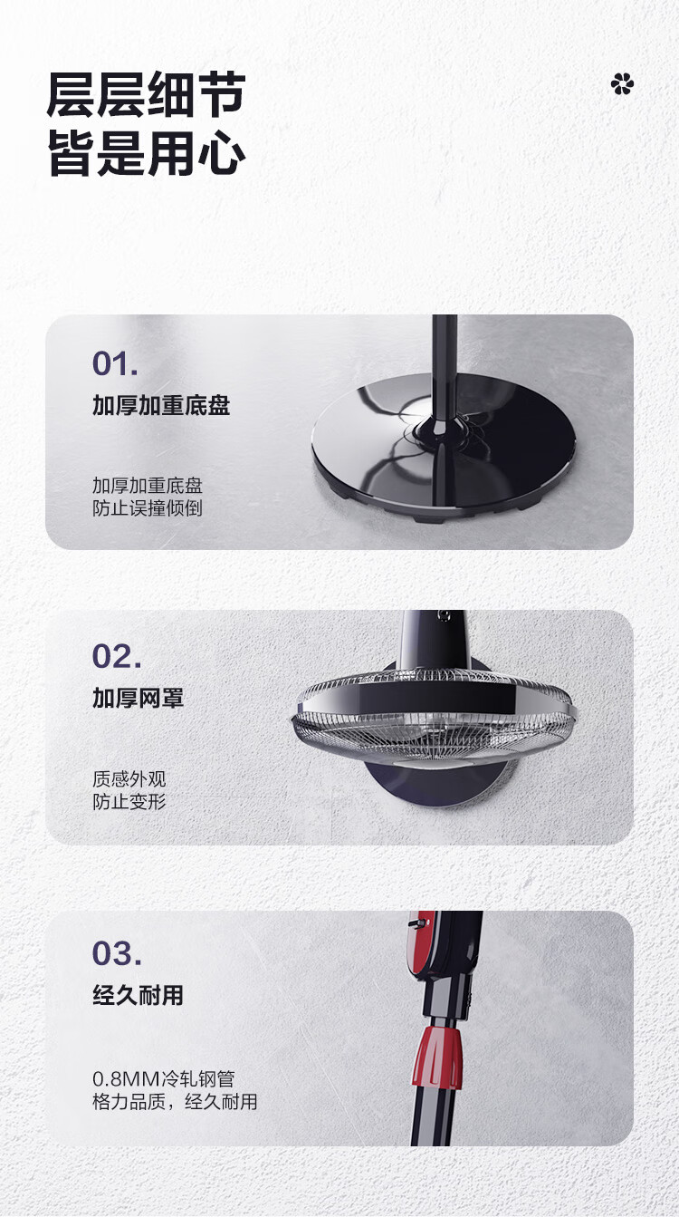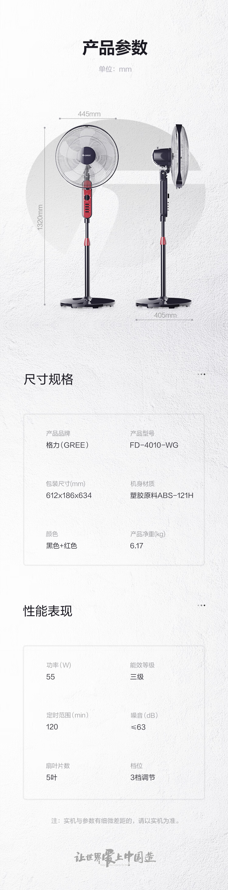 格力(GREE)【巨风量】落地扇远吹风电风扇台式电扇易拆洗广角摇头节能定时轻音小型风扇FD-4010-WG