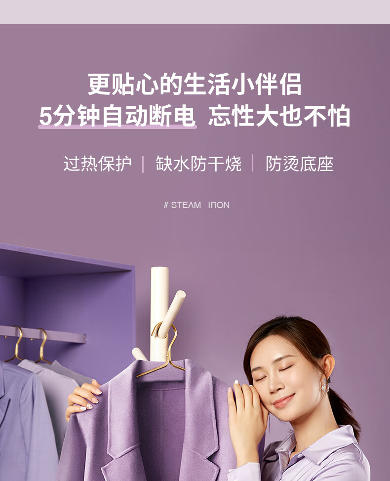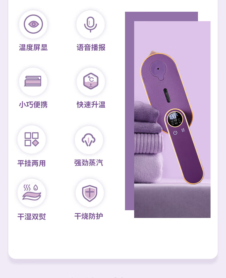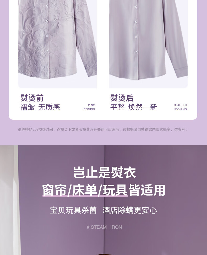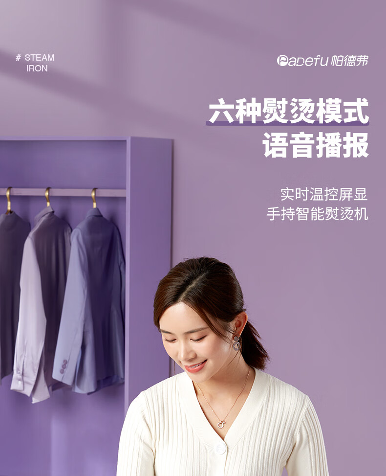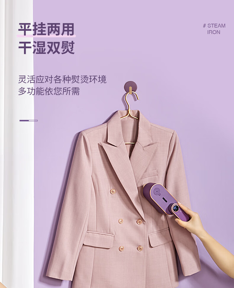 帕德弗(PADEFU)手持挂烫机家用蒸汽电熨斗小型便携式熨烫机衣服神器紫色