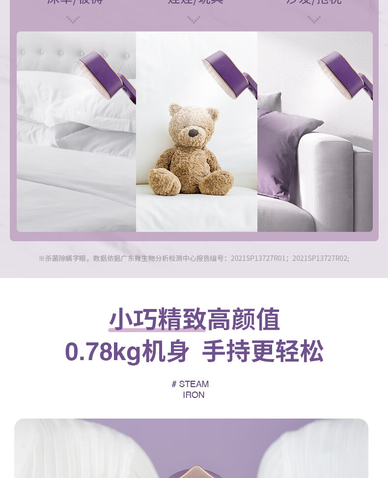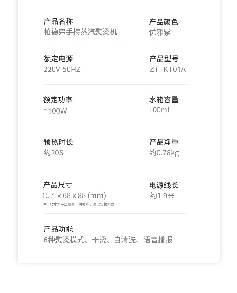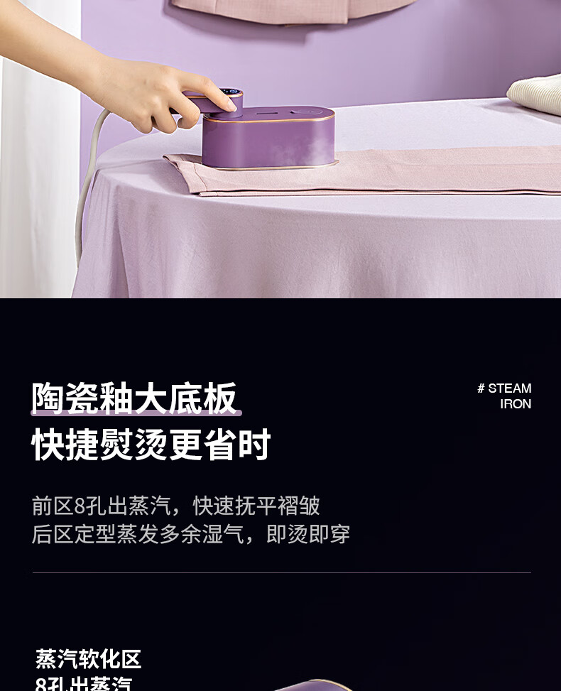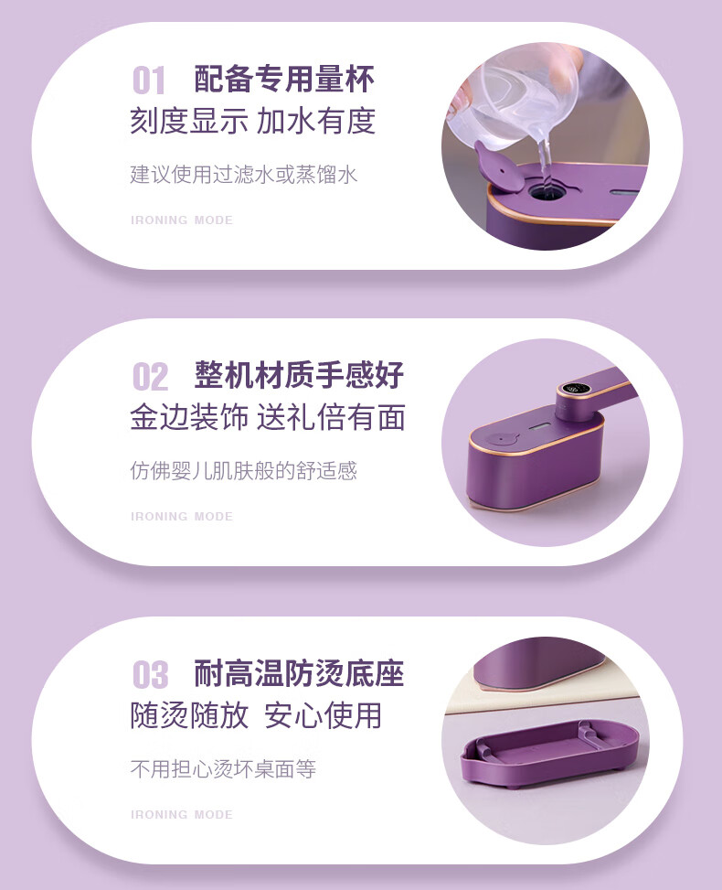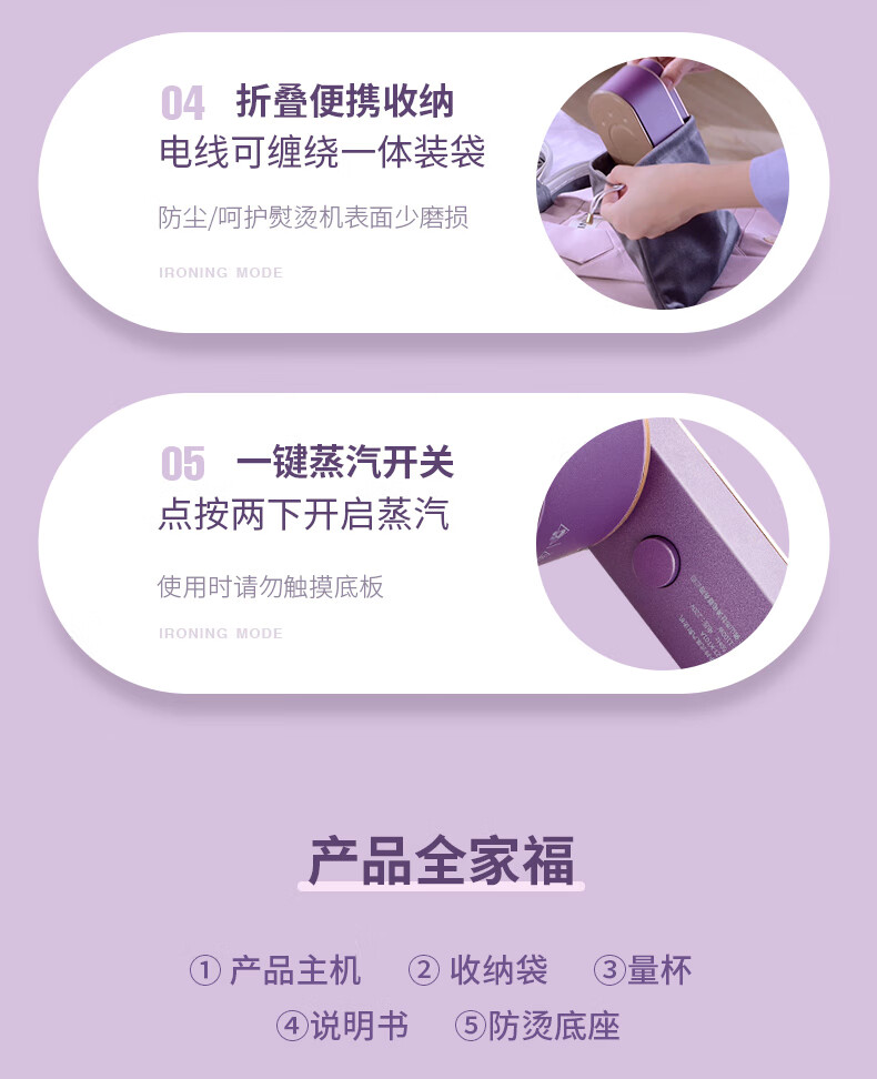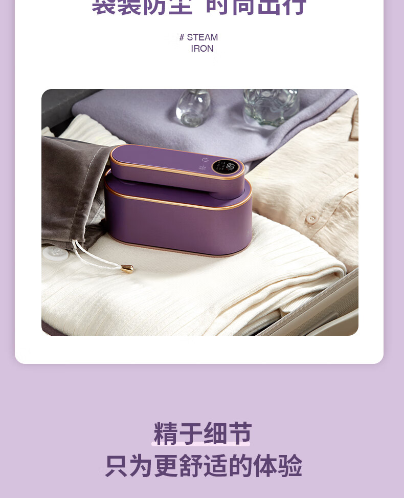 帕德弗(PADEFU)手持挂烫机家用蒸汽电熨斗小型便携式熨烫机衣服神器紫色