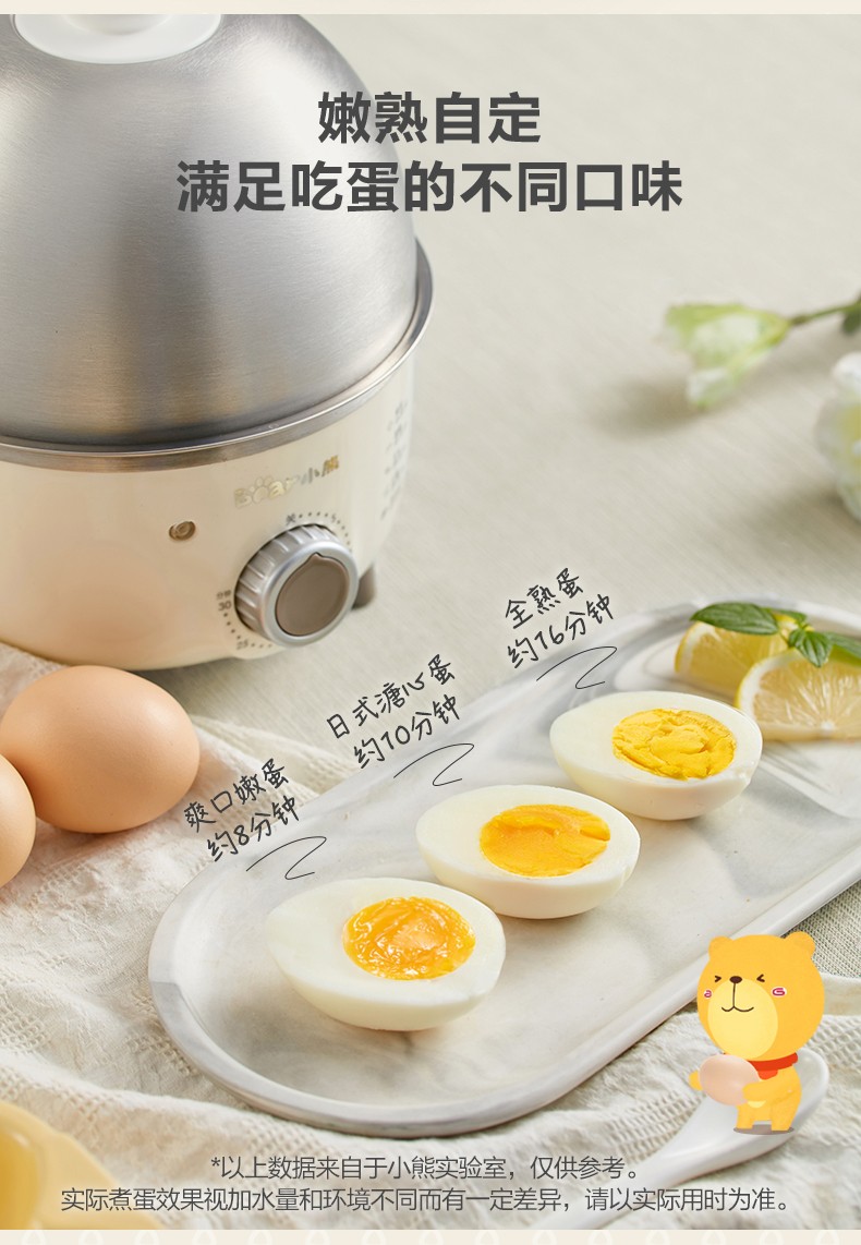 小熊(Bear)煮蛋器小型家用电蒸锅可定时不锈钢蒸蛋器自动断电蒸锅鸡蛋羹迷你鸡蛋器【旋钮定时+304不锈钢】ZDQ-B07C3