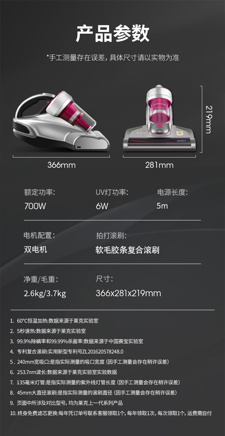 莱克吉米除螨仪WB73小型手持床铺除螨机床上加热紫外线杀菌家用吸尘除螨器WB73